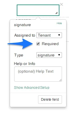 It is really easy to make a box compulsory. When you set up the document, just tick the “Required” box on the dropdown when setting up the field. Easy as that. Compulsory fields are marked with a red star in the top right hand corner during the signing process.